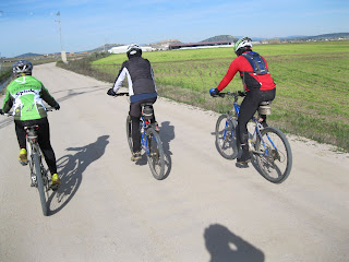 Ya de vuelta se produce otro incidente: el sobrino de Manuel Jesús, da muestras de agotamiento y sus piernas dicen “hasta aquí hemos llegado”. Llamamos a su padre para que venga a por él. Más percances: A Javi se le rompe la cadena y Paco pincha (bueno, él no, su bici).